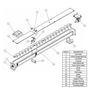 تصميم الخندق على شكل U:يوفر سعة أعلى من ناقلات المسمار الأسطوانية التقليدية ويوفر سهولة الوصول للتفتيش والتنظيف مقارنة بنقل الأنابيب المغلقة.